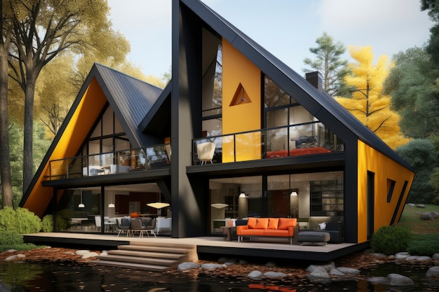 3. Природные материалы и органические формы. Применение натуральных материалов, таких как дерево, камень и стекло, в сочетании с органическими формами помогают сохранить дух стиля Райта в современном дизайне двухэтажных домов. Это может быть достигнуто с помощью использования деревянных балок, каменных стен, больших окон и крыш-скатов.