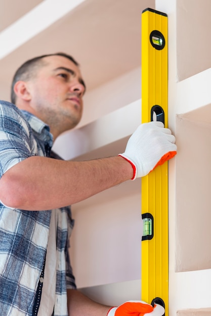 - Измерьте толщину гипсокартона. Используйте линейку или мерный инструмент, чтобы определить точную толщину гипсокартона. Это важно, так как длина саморезов должна быть достаточной для проникновения в гипсокартон на нужную глубину.