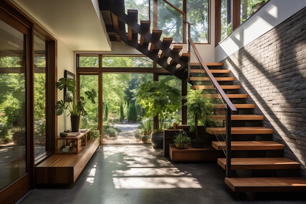 Современный стиль: Для домов в современном стиле рекомендуется выбирать лестницы с простыми и геометрическими формами. Глянцевые металлические перила или стеклянные балюстрады отлично сочетаются с минималистскими интерьерами.