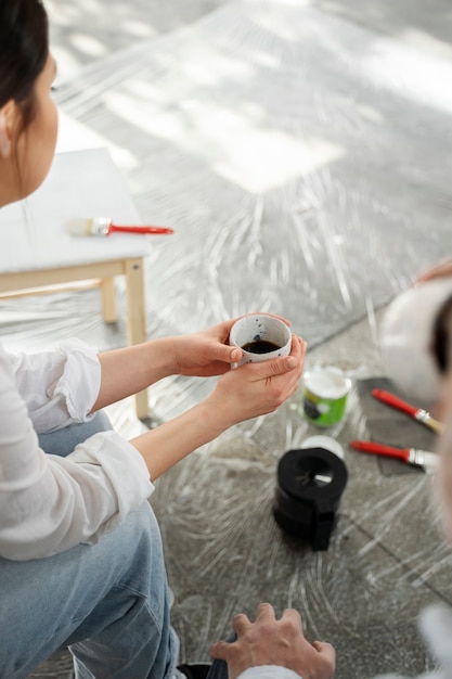Перед нанесением акриловой краски необходимо хорошо перемешать ее, чтобы достичь однородности и убрать все возможные комки. Это поможет достичь равномерного распределения краски по поверхности. Рекомендуется использовать специальную палитру для перемешивания краски.