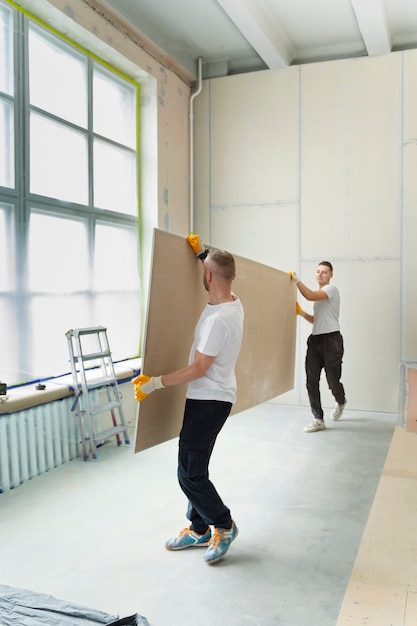 Перед началом работы необходимо провести подготовительные мероприятия. Это включает в себя очистку помещения от мебели и личных вещей, защиту пола пленкой или картоном, а также установку строительного мусоропровода для вывоза отходов.