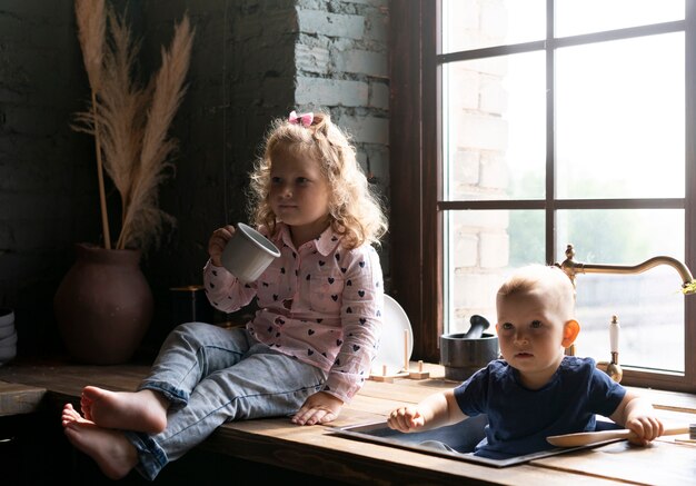 - Совместная деятельность: Дети могут использовать письменный стол у окна, чтобы совместно заниматься учебой или другими активностями. Это помогает развивать навыки сотрудничества, коммуникации и коллективной работы, что является важным аспектом их социального развития.